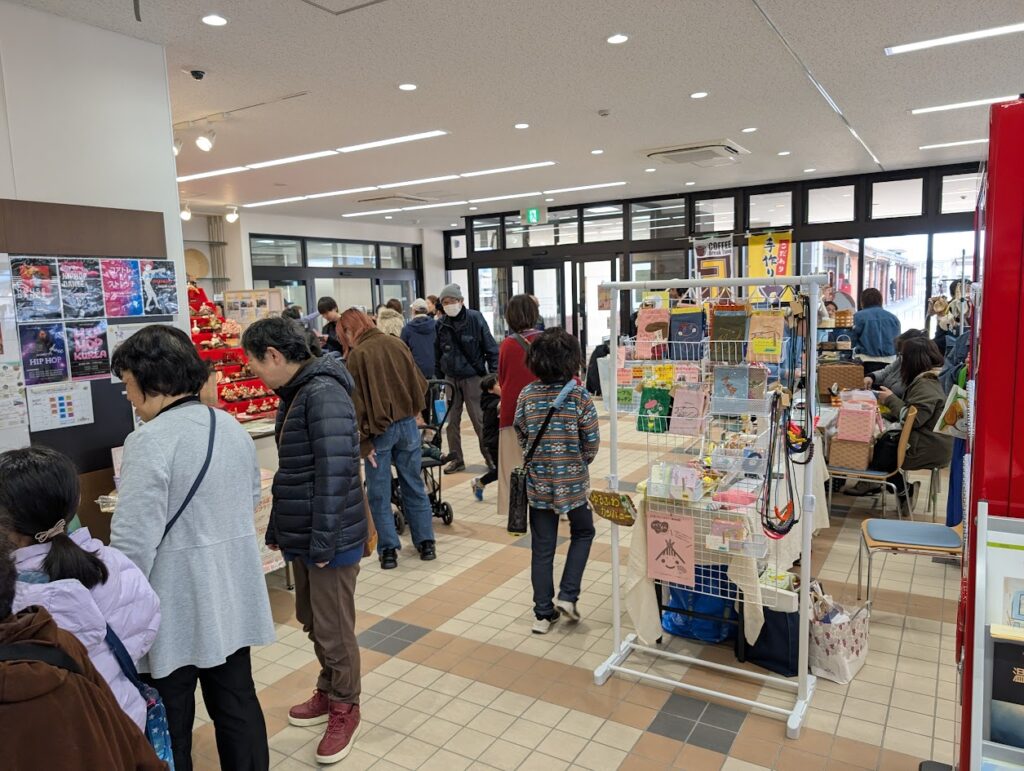 ・交流館やスタンプラリーの場所で行われているマルシェ