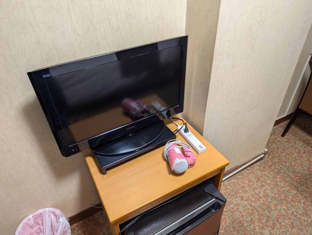 テレビは小さめです。机の真後ろの位置にあるので見にくいです。